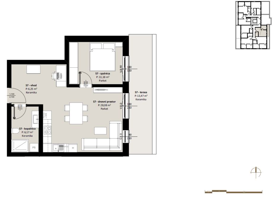 Predstavljamo sodobno 2-sobno stanovanje z atraktivno teraso, ki se nahaja v prvem nadstropju prestižnega vilabloka VIVA. Orientacija proti vzhodu prinaša obilico jutranje svetlobe in ustvarja prijetno, sveže bivalno okolje.