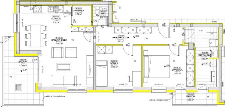 ENOTA N1 05 - 3 SOBNO STANOVANJE - z 2 balkonoma - 99,47 m2
