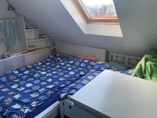 V večstanovanjski hiši s štirimi stanovanji in večjim balkonom se v drugem nadstropju prodaja 1,5 sobno mansardno stanovanje. Ima neto tlorisne površine 59,8 m2 in 38 m2 uporabne površine. Stanovanje je svetlo ves dan. Dnevna soba in jedilnica sta povezani in ustvarjata prijeten ambient. Ob njiju je ločen spalni del na zahodni strani. Kopalnica z wc je takoj ob vhodu. Stanovanje je primerno tako za bivanje kot za investicijo.