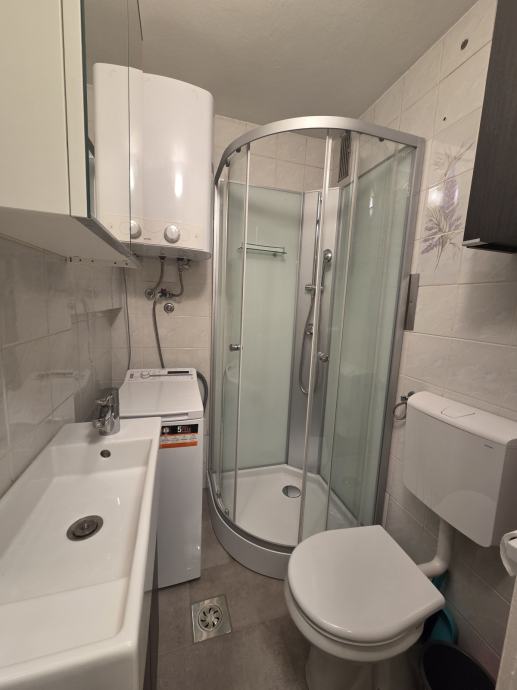 Stanovanje je popolnoma opremljeno. Kuhinja s vsemi aparati: indukcijska kuhalna plošča, vgradna pečica, hladilnik in posoda. Dnevna soba s udobno sedežno, omarami, mizo s stoli in televizijo. V kopalnici se nahaja pralni stroj, tuš kabina in bojler za toplo vodo.