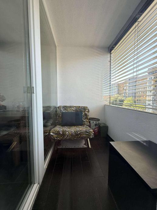 Stanovanje je prostorno in razgibano. Iz predsobe vstopimo naravnost v veliko dnevno sobo z izhodom na balkon, na levo je kuhinja z jedilnico, ki ima prav tako izhod na balkon. Kopalnica je moderna in prostorna, s tuš kabino,straniščem, umivalnikom ter prostorom za pralni stroj.