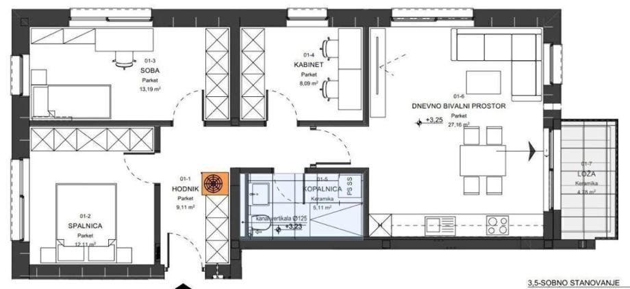 V stavbi bodo 3 dvosobna stanovanja in 6 tri in pol sobnih stanovanj.