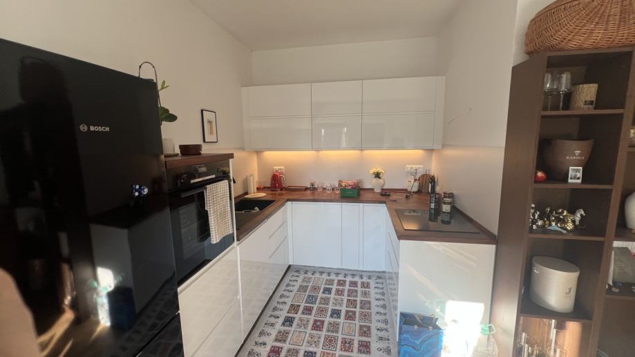 Le dve leti staro 3 sobno stanovanje 95,7 m2 z velikim atrijem 26,9 m2, parkirnim mestom, popolno opremljeno, prodamo. Toplotna črpalka, talno gretje, električna senčila. Svetlo stanovanje z višino stropa 2,7m in novo opremo. Obvezen nakup opreme v višini 9.900€ (kuhinja za aparati Bosch, jedilnica, spalnica, otroška soba, omare na hodniku, zunanja oprema). Šola in vrtec le 200m vse dostopno peš. Majhen blok z le 8 stanovanji.