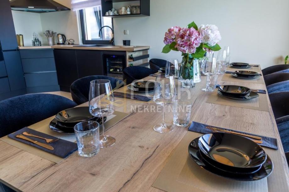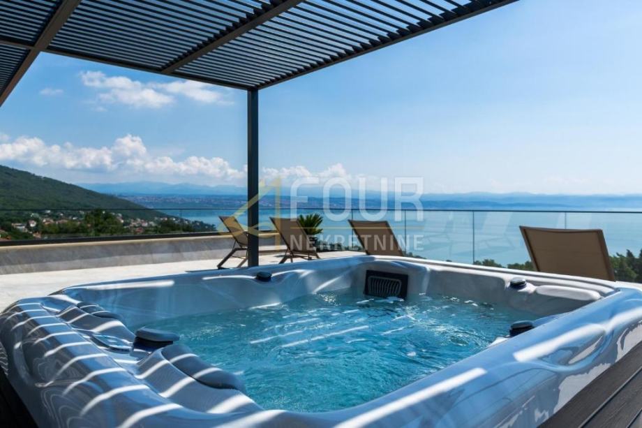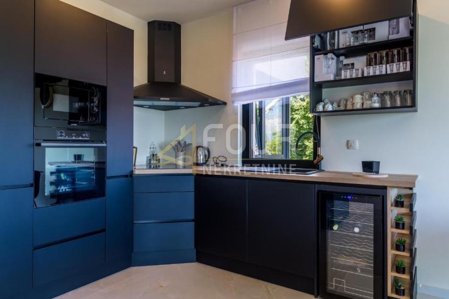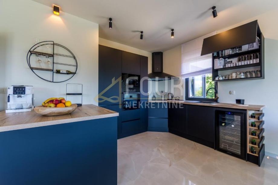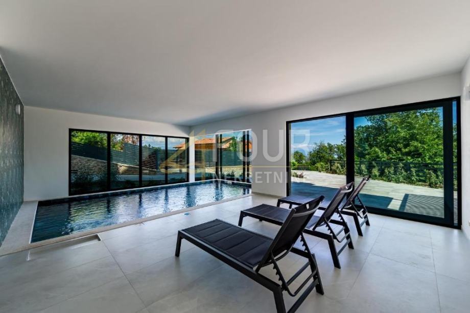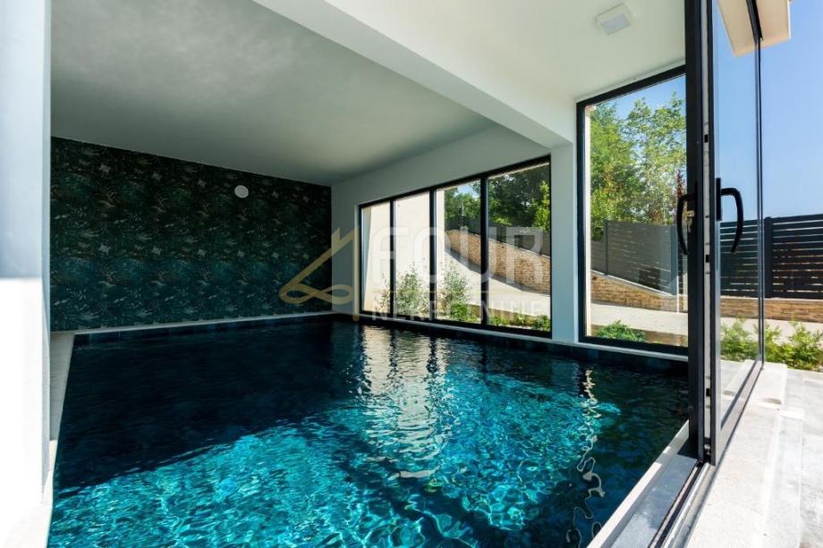 V kleti je garaža, pa tudi wellness in spa, vključno z notranjim bazenom in masažno kadjo, ki ponujajo popoln prostor za sprostitev in uživanje. Pritličje vključuje eleganten dnevni prostor, povezan z moderno opremljeno kuhinjo, spalnico in kopalnico. Na prvem nadstropju so tri prostorne spalnice, vsaka z lastno kopalnico, medtem ko drugo nadstropje ponuja dodatno sobo in čudovito teraso, idealno za sprostitev in uživanje v razgledu.