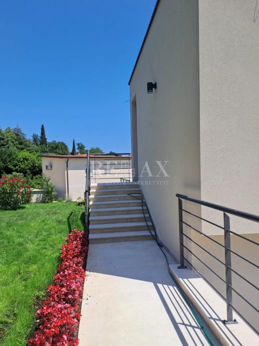 Predstavljamo vam edinstveno priložnost v samem srcu Lovrana – stanovanje v novogradnji z bazenom in bivalno površino 140 m². Ta ekskluzivna nepremičnina se nahaja na vrhunski lokaciji, v mirni slepi ulici z dvema pasovoma, s popolnoma novo infrastrukturo in brez možnosti širitve ali gradnje, ki bi lahko zaprla spektakularen pogled na morje.