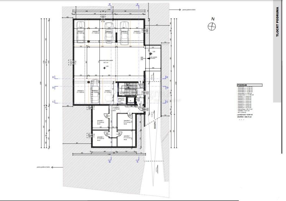 V kletni etaži objekta sta 2 garažni mesti s polnilno postajo za električne avtomobile in pripadajoča shramba 11,44 m².