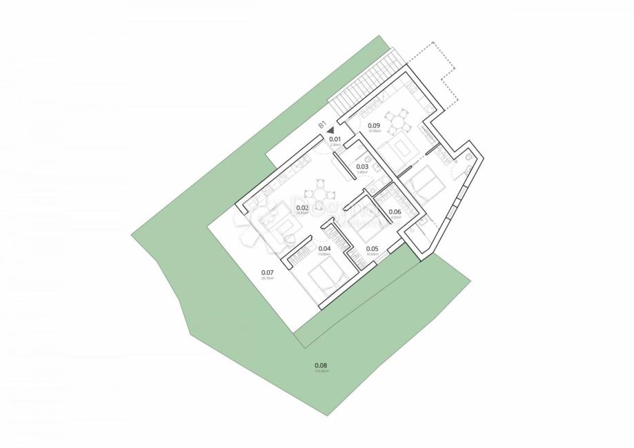BONUS: Za vsako stanovanje je v ceno vključeno solastništvo več kot 650 m² zemljišča ob rezidenci s pogledom na morje, bazenom in žarom.
