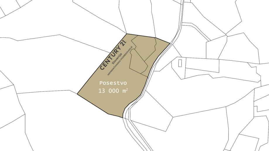 Na voljo je posestvo s skupno površino okoli 13.000 m² v mirnem, hribovitem okolju, obdanem z naravo in gozdom. Osrednja parcela velikosti 1068 m² je delno namenjena vinogradništvu in gradnji vinske kleti, preostali del pa omogoča kmetijsko rabo, kot so vinogradi, sadovnjaki in sorodne dejavnosti. Ostalih 12.000 m² obsega kmetijska in gozdna zemljišča, primerna za agrarne dejavnosti, turizem in občasno bivanje.