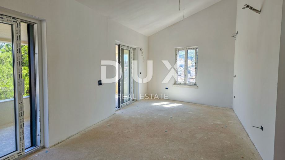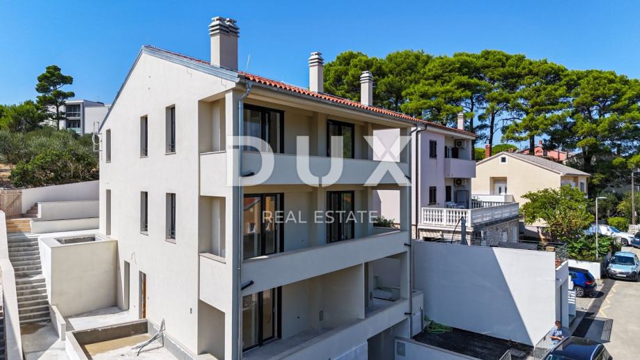 MALI LOŠINJ, CENTER - Edinstven penthouse 100m od morja! Predstavljamo vam edinstveno luksuzno stanovanje v novi stavbi, ki se nahaja v srcu Malega Lošinja, le 100 metrov od kristalno čistega morja. Nepremičnina ponuja vrhunsko doživetje pravih počitnic na Lošinju. V drugem nadstropju stavbe je 105 m² odlično zasnovanega bivalnega prostora, z dodatkom zasebnega vrta v velikosti 25 m². Stanovanje ponuja spektakularen pogled na slikovit zaliv in staro mestno jedro, stavba pa ima samo štiri stanovanjske enote. Zelo moderna zasnova, tloris z odprto kuhinjo, jedilnico in dnevno sobo, tremi spalnicami, kopalnico, dodatnim WC + tehničnim prostorom in eno shrambo v stanovanju. V kopalnicah talno gretje, mizarstvo Rehau in multisplit klimatske naprave, protivlomna, protipožarna vrata, domofon. Stanovanju pripada vrt za objektom, eno parkirno mesto pred objektom in eno v garaži, z dodatno shrambo. Ograjne stene bodo obložene z vrhunskim braškim kamnom. Popolnoma idealna nepremičnina za vse tiste, ki iščejo počitnice na prelepem Lošinju, in enako privlačna za turistični najem. *** Cenjene stranke, agencijska provizija se obračunava v skladu s Splošnimi pogoji poslovanja www.dux-nekretnine.hr/opci-uvjeti-poslovanja