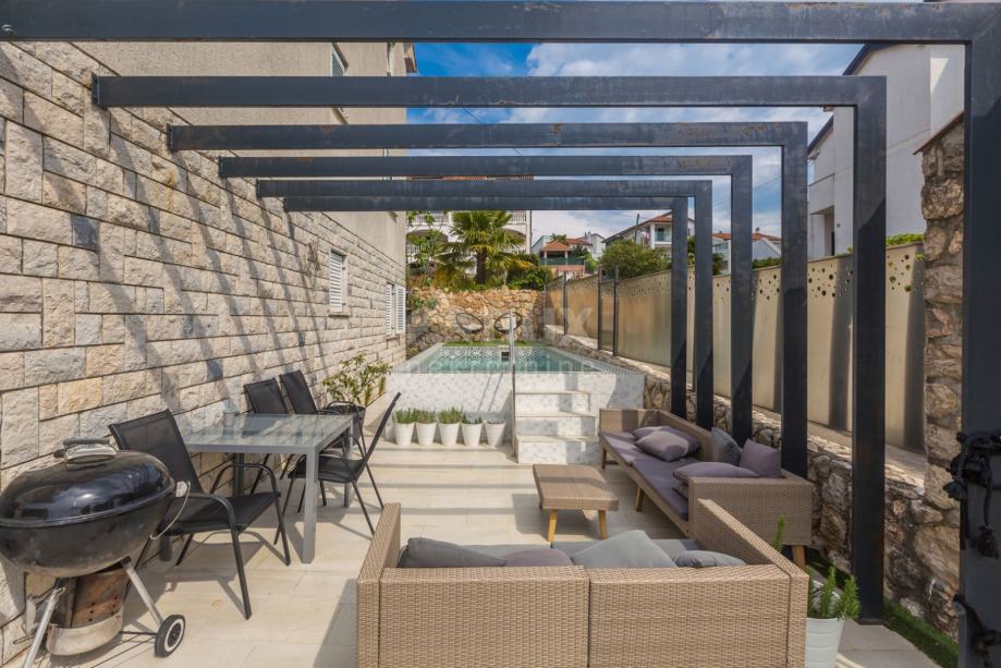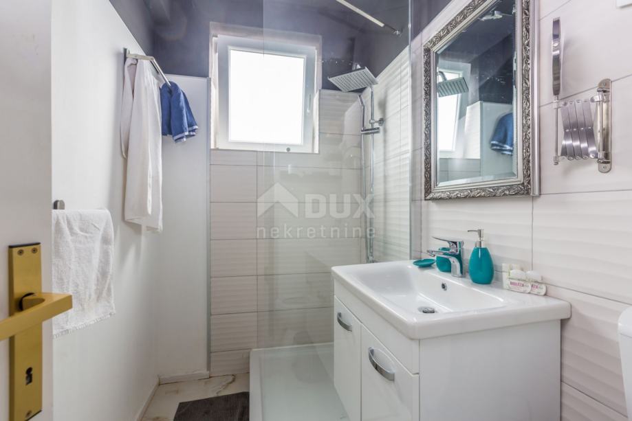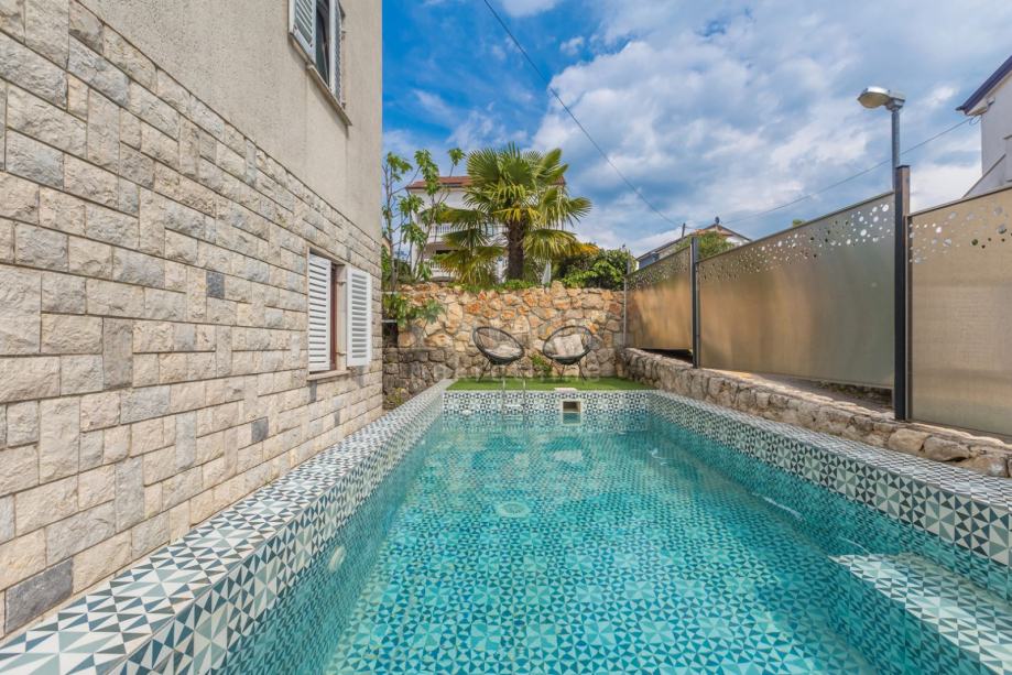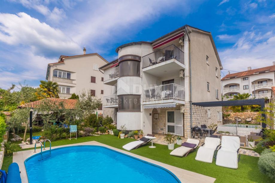 Malinska - apartmajska hiša z dvema bazenoma in pogledom na morje. Hiša je sestavljena iz skupno 6 stanovanj, od tega je 5 dvosobnih z dnevno sobo in eno enosobno z dnevno sobo. V pritličju je pralnica, ob kateri je soba za osebje. Idealno kot nakup za investicijo in prevzem uveljavljenega najemnega posla. Na strehi so sončni paneli, ki se uporabljajo za ogrevanje vode. Na dvorišču sta celo dva bazena. Eden je namenjen uporabi samo za stanovanje v pritličju, ob katerem se nahaja. Drugi je namenjen vsem ostalim. Na čudovitem vrtu je še ena letna kuhinja s pokrito teraso, sončna terasa in parkirišče za več avtomobilov. Najmočnejša prednost te nepremičnine je odlična lokacija, le nekaj minut hoje od centra Malinske in morja.