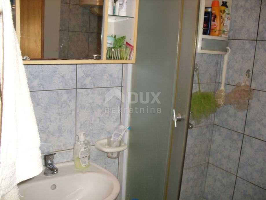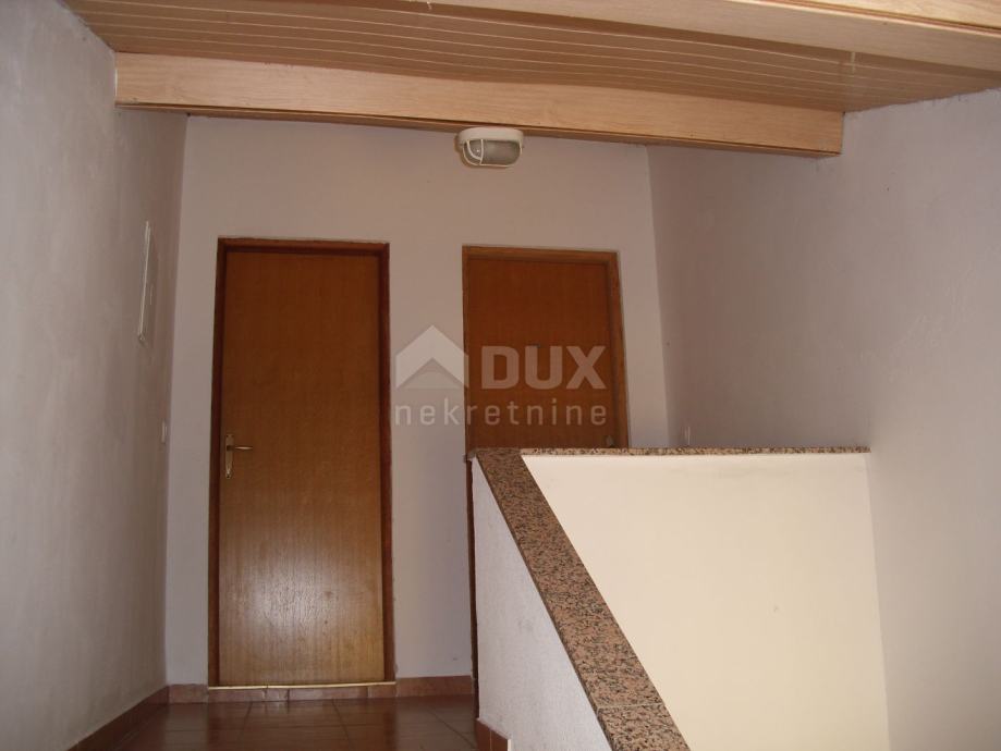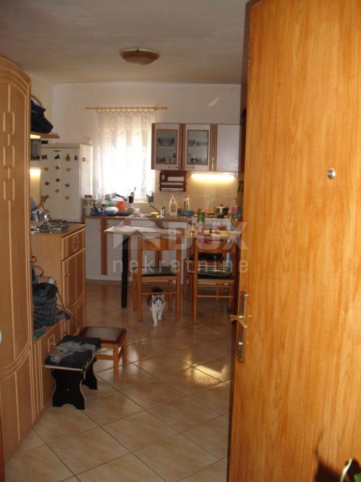 V majhnem naselju v bližini Malinske, cca 1600 m od morja, sta naprodaj dva apartmaja v prvem nadstropju in v mansardi z vrtom 30 m2 in parkirno mesto 19 m2. Stanovanje v prvem nadstropju je sestavljeno iz kopalnice, ene spalnice in kuhinje z jedilnico ter dnevno sobo iz katere je izhod na teraso 7,80 m2. Stanovanje je opremljeno z domofonom, telefonskim priključkom z internetom in satelitskim sprejemnikom, klimatsko napravo, obstaja pa tudi možnost ogrevanja na drva/pelete. Stanovanje ima PVC stavbno pohištvo z žaluzijami in je opremljeno ter vseljivo. Stanovanje v mansardi je roh-bau z inštalacijami za elektriko in vodo (dovod/odtok) ter enim strešnim oknom. Projektna dokumentacija omogoča vgradnjo treh dodatnih strešnih oken in enega standardnega. Uporabna površina je 44,60 m2, čeprav je površina z dodatkom manjših višin cca 70-80 m2.
