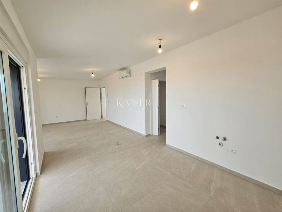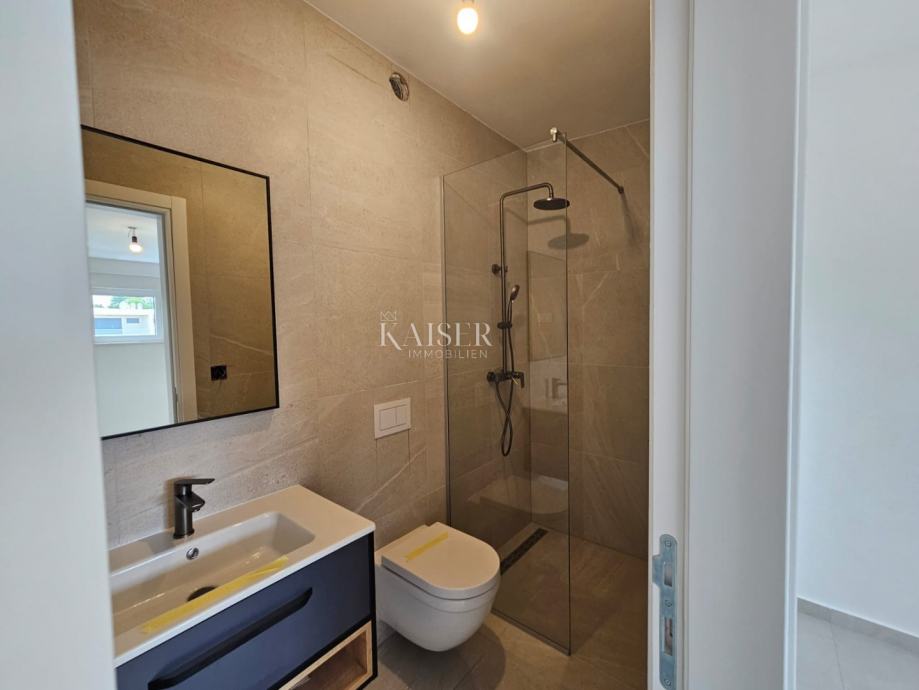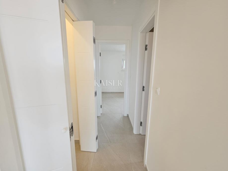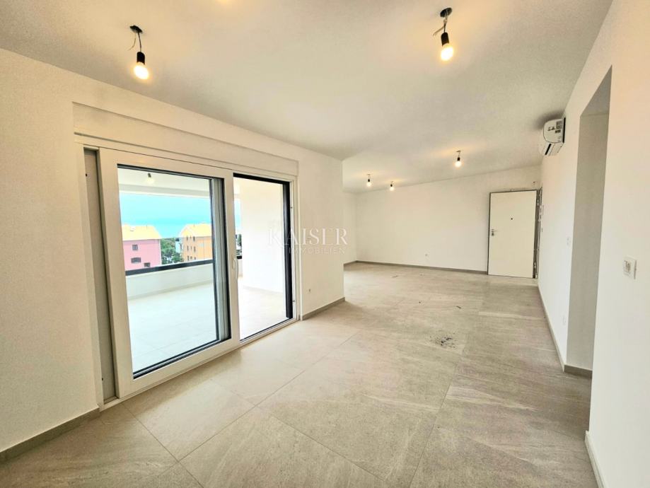 Kaiser Immobilien predstavlja stanovanje v gradnji s pogledom na morje, bivalne površine 80,05m2. Stavba je sestavljena iz pritličja in dveh nadstropij. Stanovanje se nahaja v prvem nadstropju in je sestavljeno iz prostorne in svetle dnevne sobe, ki skupaj s kuhinjo in jedilnico tvori koncept odprtega prostora. Iz dnevne sobe je izhod na teraso, ki zagotavlja naravno osvetlitev in izhod na teraso s pogledom na morje. Stanovanje ima tudi dve spalnici, dve kopalnici in shrambo kot dodatno shrambo. Dodatna ugodnost tega stanovanja je eno parkirno mesto. Stanovanje se prodaja neopremljeno z opremljeno kopalnico. Pri gradnji so uporabljeni materiali visoke kakovosti, 20 centimetrov debela izolacija v kombinaciji z vrhunskim mizarstvom zagotavlja visoko energetsko učinkovitost. Vse sobe so klimatizirane, za dodatno udobje pa ima dnevni prostor in kopalnica talno gretje. Samo 700 metrov od morja ponuja edinstveno priložnost za uživanje v plažah in morskih aktivnostih. Ostale ugodnosti: Trgovina: 500 metrov Šola: 800 metrov Center Malinske: 1500 metrov Letališče: 15 kilometrov Ta kombinacija udobja, luksuza in praktičnosti naredi to stanovanje izjemno privlačno za bivanje. Dodatne informacije: Stanovanje je tako kot celoten objekt v gradnji, predviden rok dokončanja je konec leta 2024. Cena vključuje DDV, kupec ne plača davka na promet nepremičnin, ki v Republiki Hrvaški znaša 3%. Provizija agencije za kupca znaša 3% + DDV in se plača v primeru nakupa nepremičnine ob sklenitvi prvega pravnega posla. ID KODA 105-248