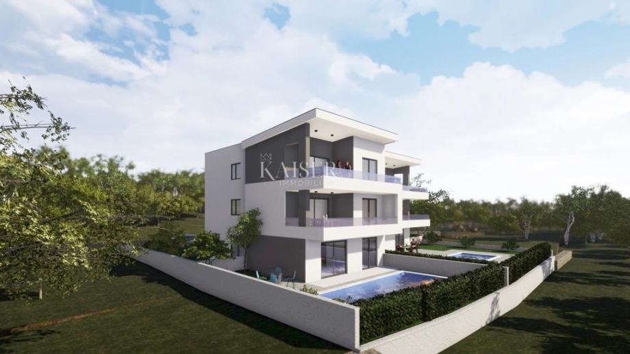 Malinska, otok Krk - apartma 110m² z bazenom in pogledom na morje (prodaja)