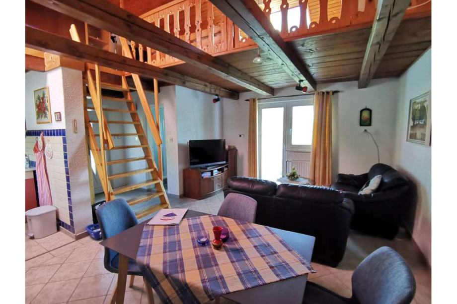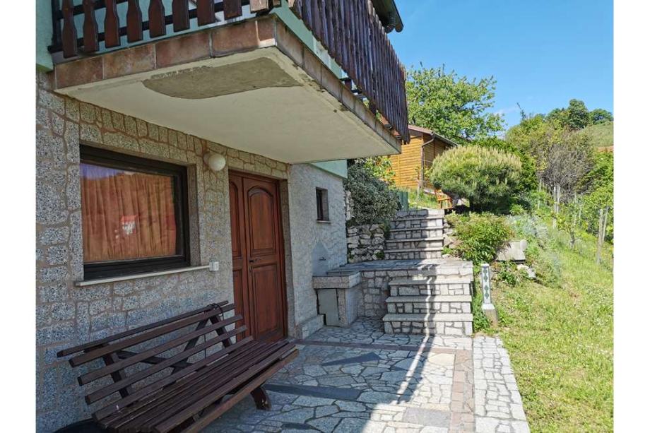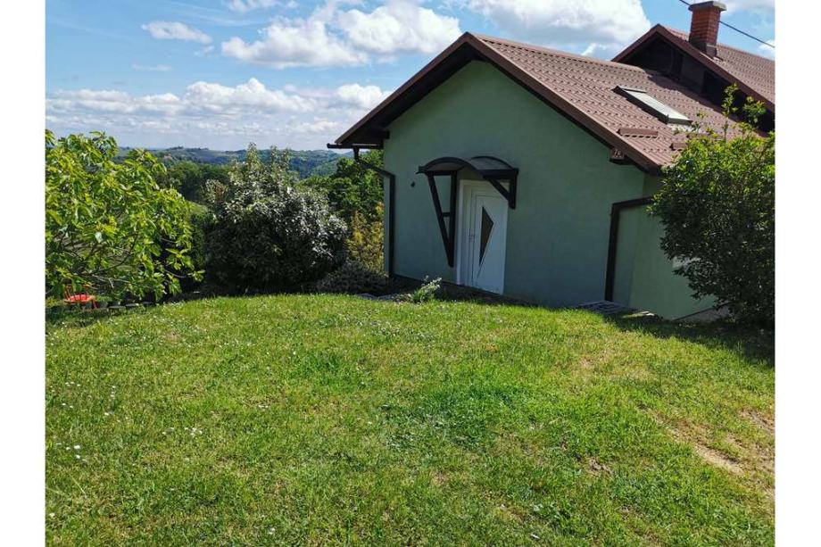V Belskem vrhu, po gričih in dolinah razpršenem naselju v občini Zavrč, prodamo enoto dvojčka, skupne površine 70 m2, zgrajenega leta 1985, popolnoma obnovljenega 2010. Hiši pripada in obdaja 1.332 m2, delno stavbnega, delno kmetijskega zemljišča, delno ograjeno. Okrog hiše poravnano, sicer pod večjim naklonom, kjer je zasajen sadovnjak zelo različnih sadnih dreves in grmovnic.Vhodna vrata nas skozi vetrolov pripeljejo v predprostor, od koder je na levo kopalnica z WC-jem in tušem, naravnost pa dnevni prostor z izhodom na balkon, z jedilnico in kuhinjo na desno. Po lesenih stopnicah na vrh pridemo še v spalne prostore, ki so odprte narave. Talne obloge keramika, zgornja etaža les, okna PVC z žaluzijami in ponekod s komarniki, fasada izolativna (8 cm), streha pločevina S-metal (z izolacijo), klima. Ogrevanje centralno na elektriko, voda skupna s sosednjo enoto, elektrika, lastna greznica.Hiša je podkletena, vanjo vstopimo iz spodnje strani, kjer je najprej soba za druženje, na desno shramba, nato pa dva kletna prostora. Ob hiši tudi lepa terasa, iz katere je kakor iz balkona čudovit razgled po gričih in zeleni dolini.