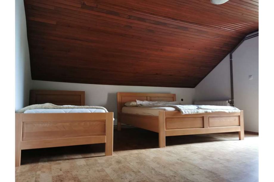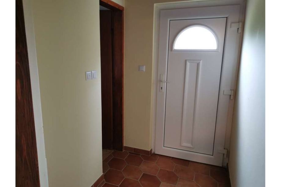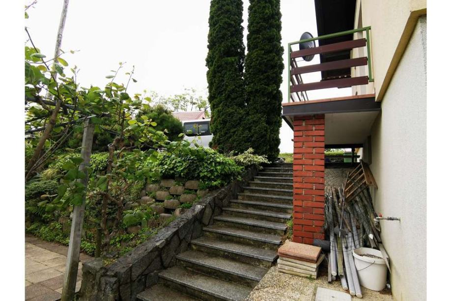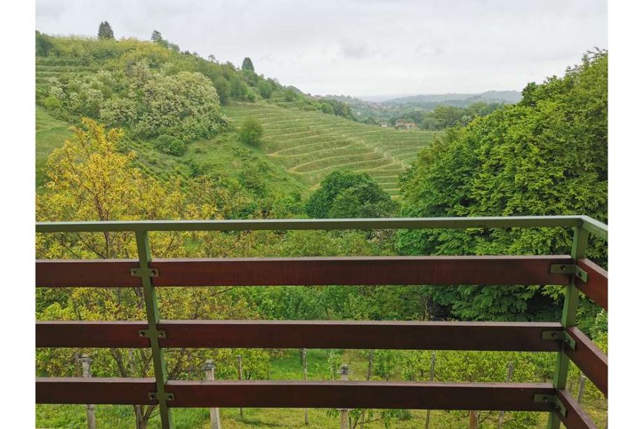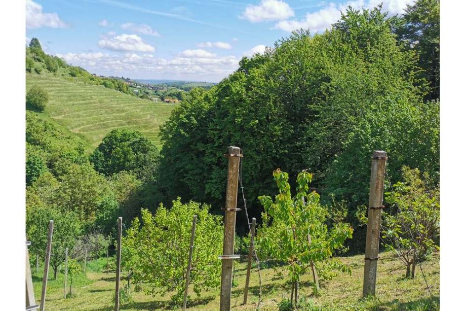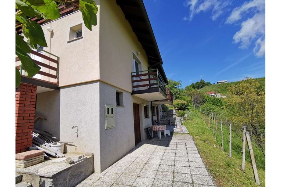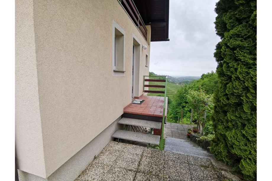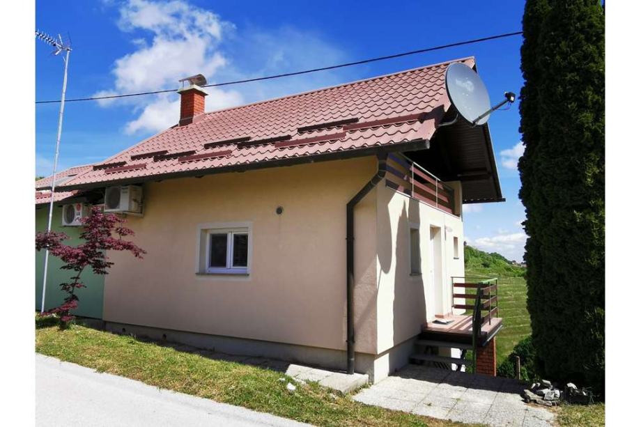 V Belskem vrhu, po gričih in dolinah razpršenem naselju v občini Zavrč, prodamo enoto dvojčka, skupne površine 63,80 m2, zgrajenega leta 1978, popolnoma obnovljenega 2010. Hiši pripada in obdaja 1.330 m2, delno stavbnega, delno kmetijskega zemljišča, delno ograjeno. Okrog hiše poravnano, sicer pod večjim naklonom, kjer je zasajen sadovnjak zelo različnih sadnih dreves in grmovnic.Vhodna vrata nas pripeljejo v predprostor, od koder je na desno kopalnica z WC-jem in tušem, naravnost pa dnevni prostor z izhodom na balkon, z jedilnico in kuhinjo na levo. Po krožnih stopnicah na vrh pridemo še v spalnico z izhodom na balkon, ki ponuja še lepši razgled daleč naokrog. Talne obloge keramika, zgornja etaža pluta, okna PVC z žaluzijami in ponekod s komarniki, fasada izolativna (8 cm), streha pločevina S-metal (z izolacijo), klima. Ogrevanje centralno na elektriko, voda skupna s sosednjo enoto, elektrika, lastna greznica.Hiša je podkletena, vanjo vstopimo iz spodnje strani, kjer je najprej kuhinja s shrambo, naprej soba za druženje, potem pa klasičen kletni prostor za ozimnico in vino. Ob hiši tudi lepa terasa, iz katere je kakor iz balkona čudovit razgled po gričih in zeleni dolini.