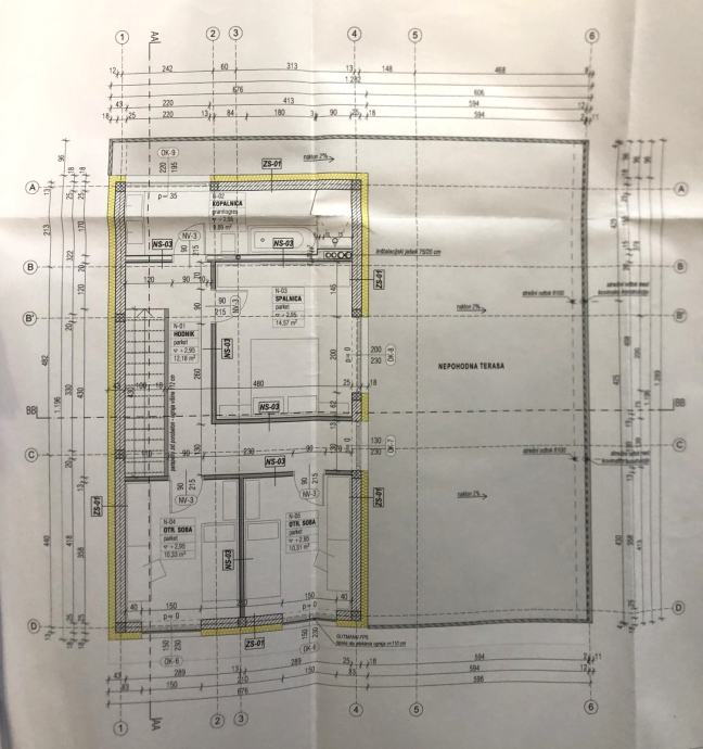 Monolitna AB etažna plošča nad pritličjem (debeline 20 cm).