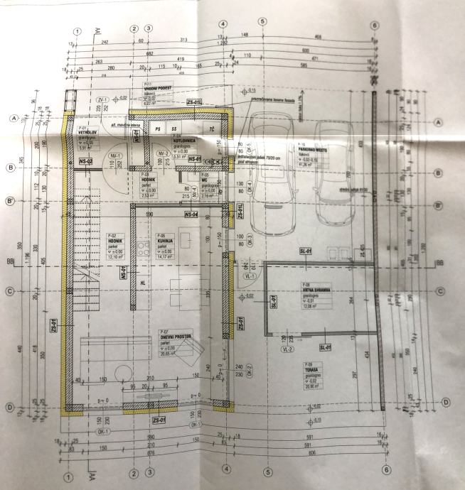 Hiša je temelječa na AB temeljni plošči debeline 25 cm, z XPS toplotno izolacijo in bitumensko hidroizolacijo. Vse armiranobetonske talne plošče so medsebojno dilatirane s toplotno izolacijo debeline 18 cm. Terasa ima betonsko ploščo debeline 15 cm, vhodni podest in dovoz sta tlakovana.