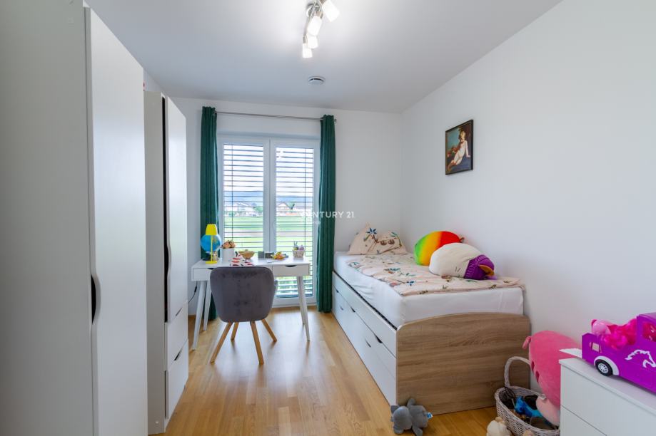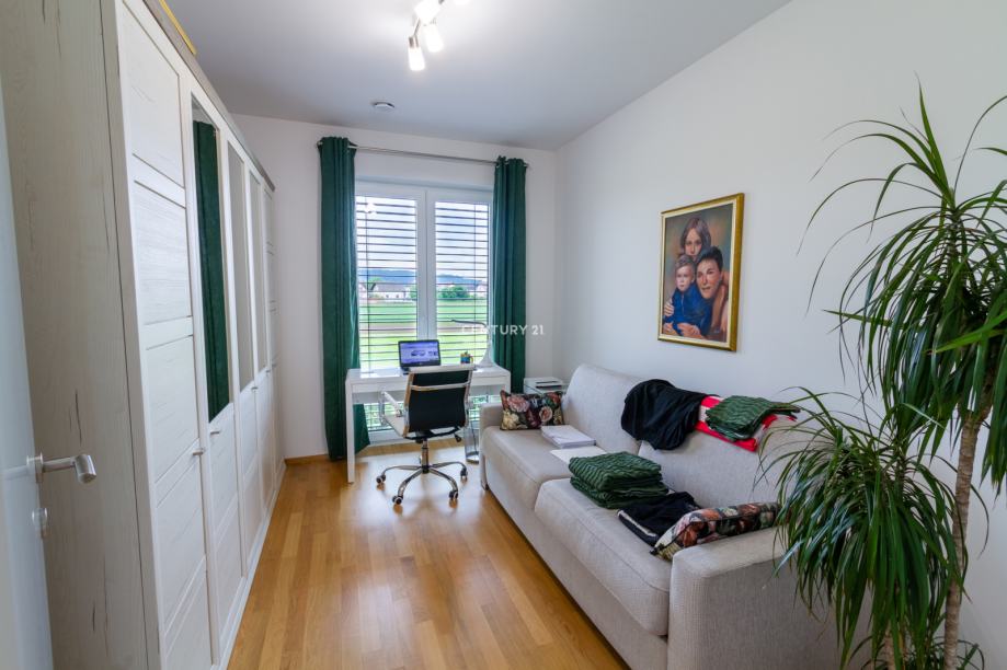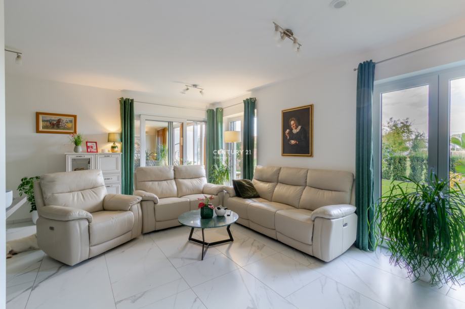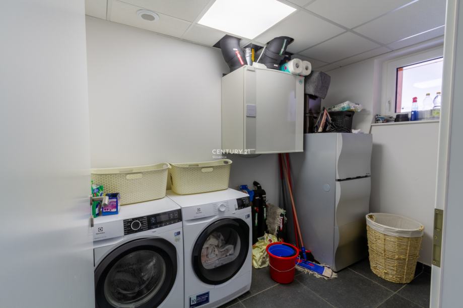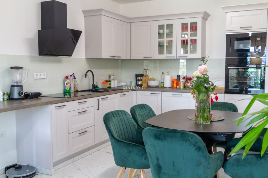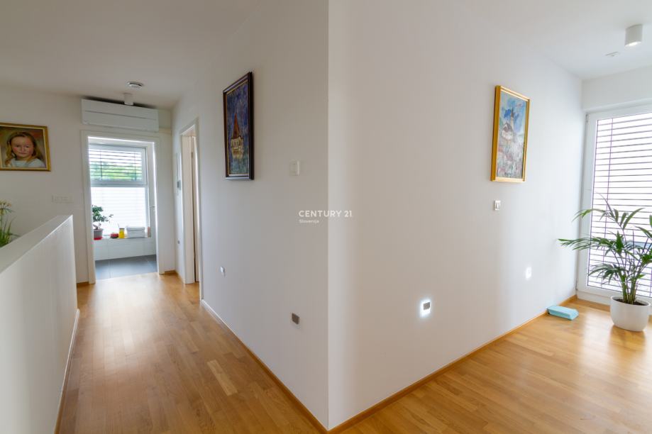 Zaradi kakovostne izolacije, troslojnega stavbnega pohištva in prezračevalnega sistema z rekuperacijo hiša zagotavlja nizke obratovalne stroške ter visoko bivalno udobje skozi vse leto. Pametni sistem omogoča daljinsko upravljanje ogrevanja, prezračevanja in razsvetljave, kar še dodatno poveča uporabnost in udobje. Zastekljena in ogrevana loža je prijeten kotiček za sprostitev v vseh letnih časih, zunanji vrt pa s tlakovano teraso, okrasnim zelenjem in drevesi ustvarja prijetno zasebno oazo za druženje ali oddih.
