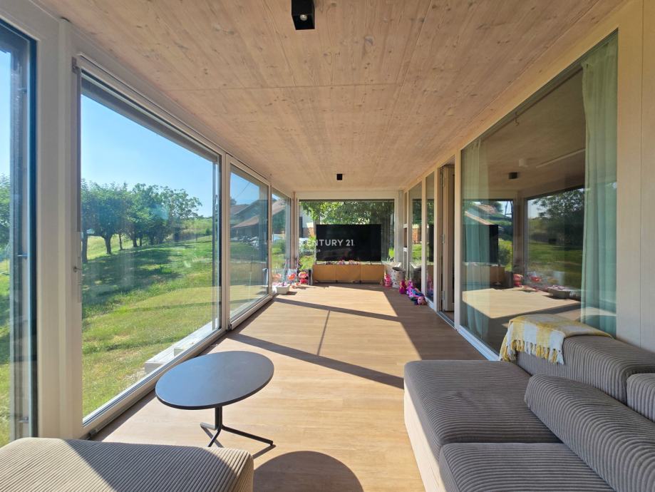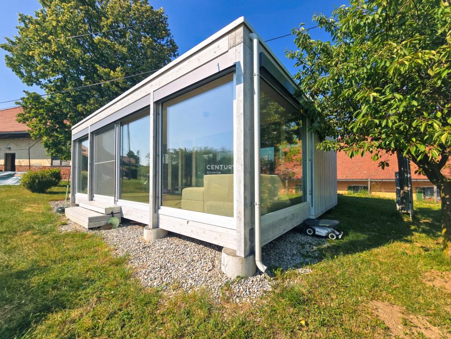 Prodamo nadstandardno montažno hiško OIKOS KOVER skupne velikosti 66 m2 (z že zastekljenim delom nekdanje terase, ki je preurejen v dodatni dnevni prostor).