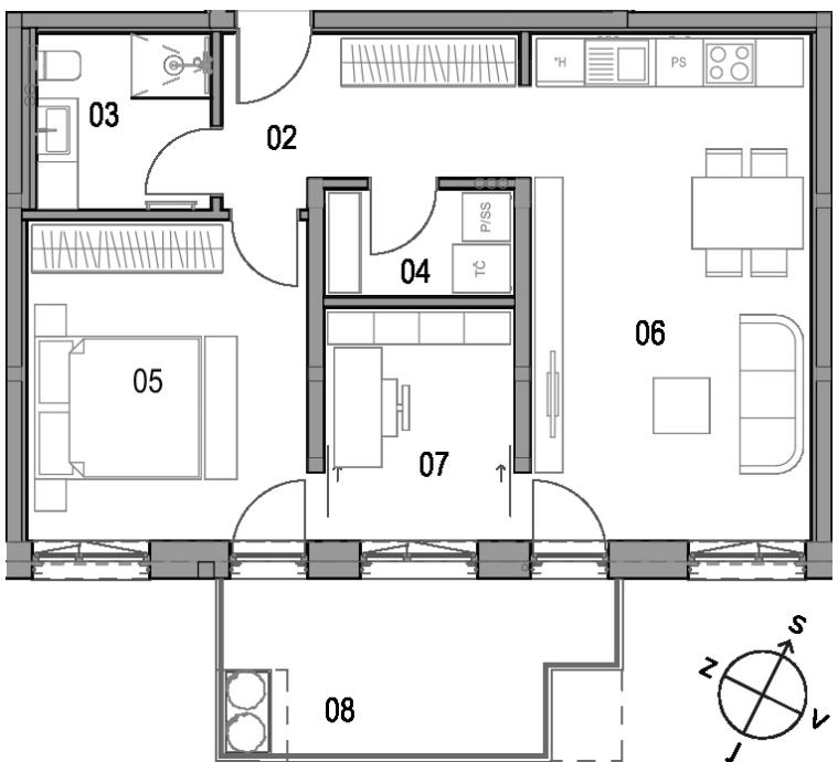 Stanovanje je velikosti 60m2 neto površine + terasa in pritlična shramba.