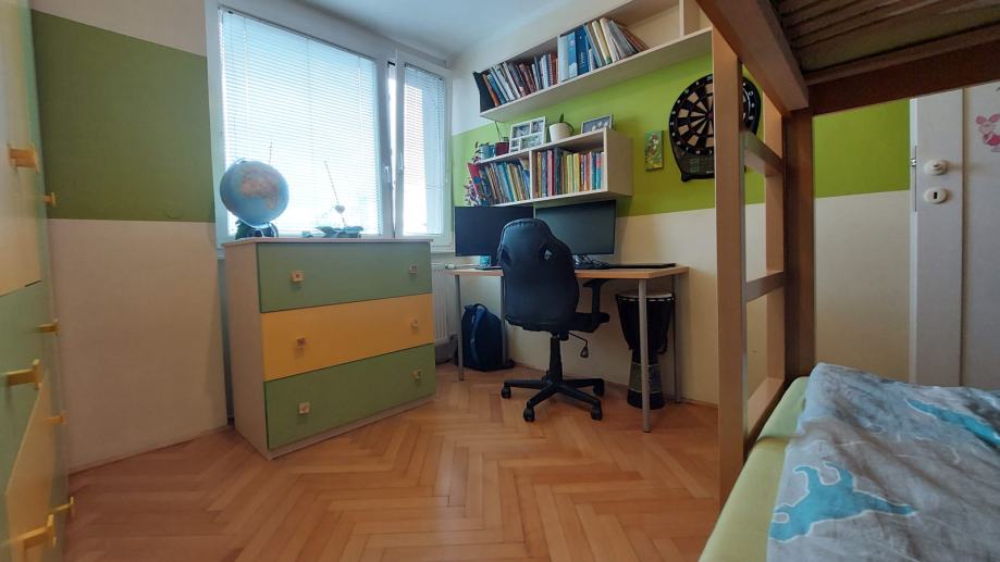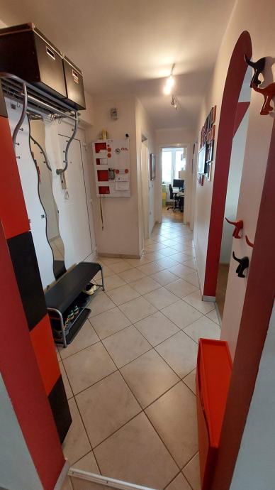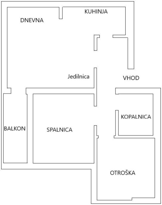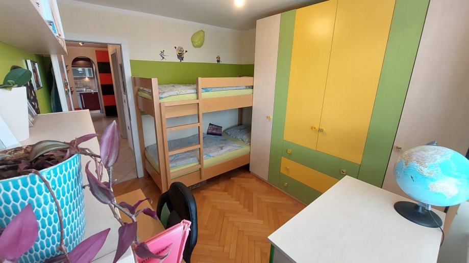 Stanovanje ima svetle in funkcionalno razporejene prostore: hodnik, kopalnica, spalnica, otroška soba in skupni prostor: kuhinja, jedilnica in dnevna soba z manjšim delovnim kotičkom. Iz skupnega prostora je izhod na zaprt balkon, z drsnim oknom.