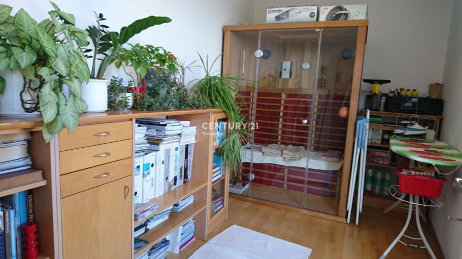 Stanovanju pripada parkirno mesto v garaži s shrambo ter dodatna kletna shramba