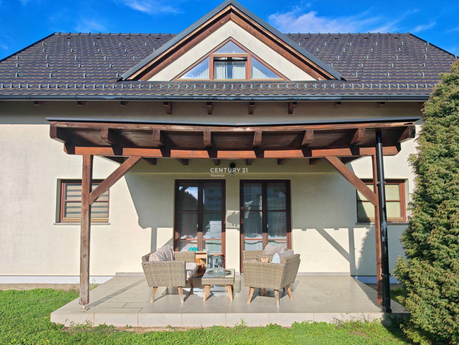 Stavba je letnik 2009, zajema neto tlorisno površino 138,1 m2 in je umeščena na ograjeni parceli, velikosti 471 m2. Orientacija prostorov je pretežno na vzhod (osrednji prostor). Na severnem delu parcele se nahaja pomožni objekt z nadstreškom (24 m2). Preostali del parcele predstavlja trata. Dovoz je urejen preko služnostne poti sosednje parcele. Urejen je tlakovan dovoz in nadstrešek za avto. Hiša je vpisana v kataster nepremičnin in ima uproabno dovoljenje. Pomožni objekt je evidentiran v Gursu.