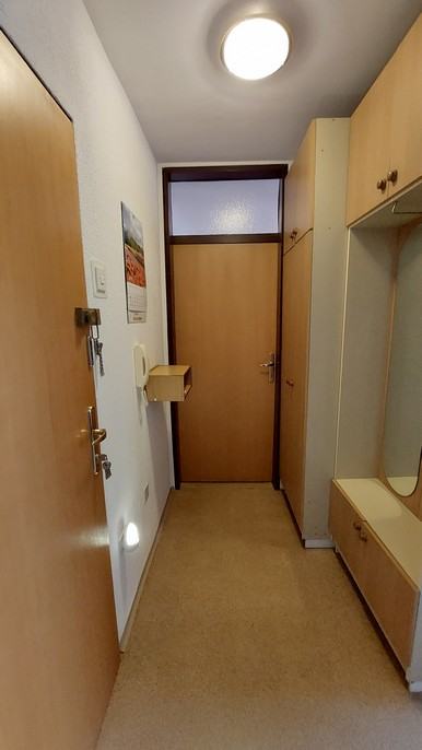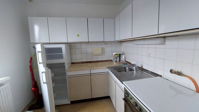 Stanovanje sestoji iz hodnika, kopalnice z wc-jem, kuhinje, ločene jedilnice, dnevne sobe, lože in kletne shrambe.