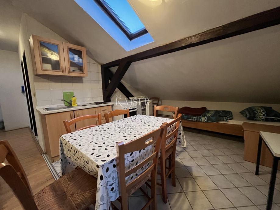Kaiser Immobilien ponuja samostojno hišo s potencialom, ki se nahaja v neposredni bližini Rukavca v občini Matulja. Hiša s 380 m2 bivalne površine se nahaja na parceli 1055 m2 in je sestavljena iz pritličja, prvega nadstropja in visokega podstrešja. Pritličje in nadstropje sta povezani z notranjim stopniščem, vendar imata tudi možnost ločitve v dve ločeni enoti, ker so zunanje stopnice. Pritličje sestavljajo tri spalnice, dnevna soba, kuhinja in jedilnica, kopalnica in ločen WC. Prostoren apartma ima neposreden dostop do vrta. V prvem nadstropju imamo identično stanovanje z balkonom in veliko teraso 40 m2. V visokem mansardi sta dve ločeni stanovanji. Hiša ima novo streho in novo fasado. Ogrevanje je centralno na kurilno olje. Ob hiši se nahaja velika garaža velikosti 40 m2. Na vrtu je tudi dovolj prostora za parkiranje avtomobila in uživanje v naravi in tišini ob svežem žaru. Ta prostorna hiša je le nekaj minut od centra Matulj, 10 minut od Opatije in 20 minut od centra Reke z avtomobilom. Lokacija hiše ponuja odlično kombinacijo narave in bližine vseh potrebnih objektov, zaradi česar je idealna za mirno družinsko življenje ali kot nepremičnina primerna za investicijo. Agencijska provizija za kupca znaša 3% + DDV. Provizija zajema vse storitve v zvezi z nakupom in se plača samo v primeru nakupa nepremičnine, ob sklenitvi pravnega akta. Za vse dodatne informacije me kontaktirajte na telefonsko številko 00385919254809 ali na elektronski naslov nelica@kaiser-immobilien.hr
