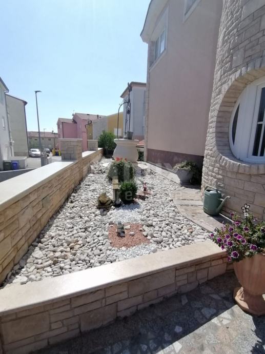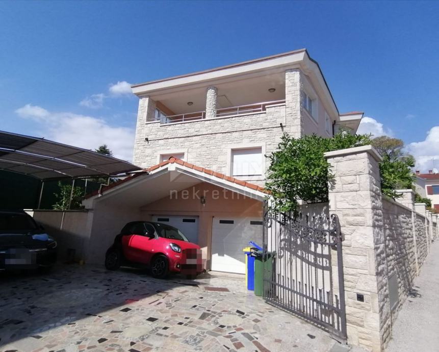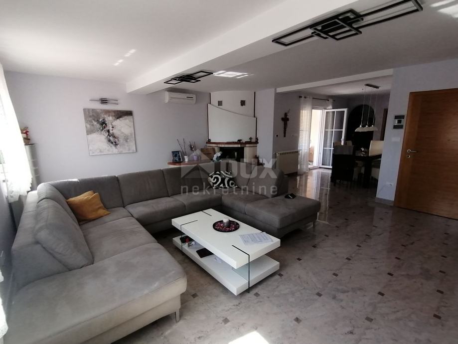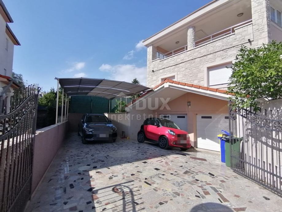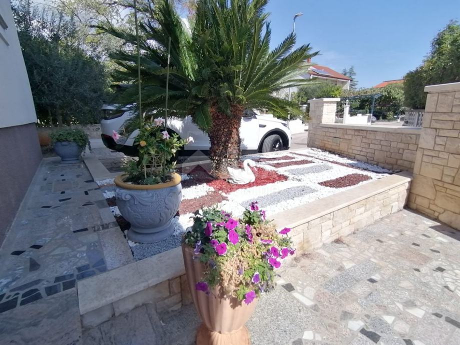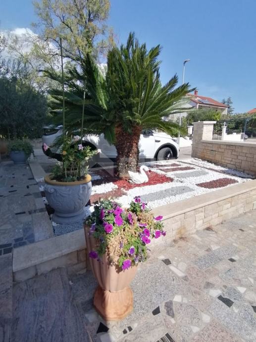 V pritličju je predprostor, predsoba, spalnica s kopalnico, kuhinja, jedilnica in dnevna soba ter velika terasa. Po notranjih stopnicah se povzpnemo v prvo nadstropje hiše, kjer je hodnik, predsoba, dve prostorni spalnici, vsaka s svojo kopalnico in teraso, še ena soba, garderoba. V kleti je pralnica, shramba, kopalnica, kurilnica, ena večja soba in dve garaži. Na vrtu sta še dve pokriti in dve nepokriti parkirni mesti. Za ogrevanje se uporablja centralno ogrevanje na kurilno olje in talno ogrevanje, vsak prostor pa je klimatiziran. Centralni bojler za toplo vodo za celo hišo Demit fasada 8cm in kamen. PVC mizarstvo s komarniki in električnimi žaluzijami. Hiša je opremljena in se taka prodaja. Idealna naložba za mirno družinsko življenje ali kot naložba v turistične namene z zagotovljenim donosom! PRILOŽNOST! Čisto lastništvo, brez bremen!