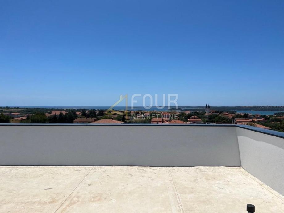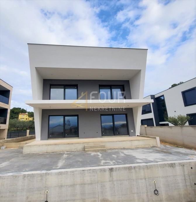 Ta izjemno lepa sodobna vila je nova gradnja, ki se nahaja na oddaljenosti 1200 metrov od morja in plaž. Vila je zasnovana kot dvostanovanjsko stanovanje. V pritličju je klet, ki služi kot prostor za druženje, in WC. V pritličju je ena spalnica z lastno kopalnico in dnevni prostor, ki vključuje kuhinjo, jedilnico in dnevno sobo, vse v odprtem prostoru. Iz dnevne sobe je izhod na prostorno teraso in bazen s sončno teraso, s katere se ponuja prelep pogled na morje. Na nadstropju se nahajajo štiri spalnice, vsaka s svojo kopalnico. Iz dveh glavnih spalnic je izhod na nadkrito teraso s prelepim pogledom na morje in rt Kamenjak.
