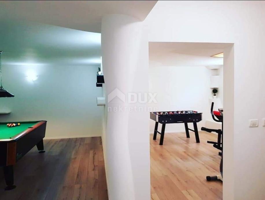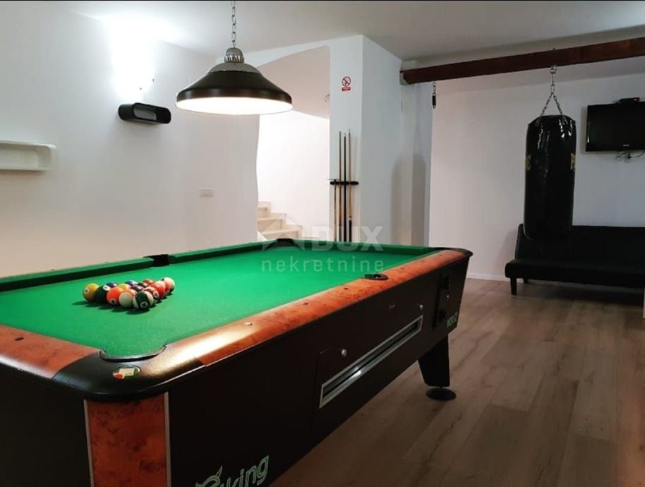 Na tej lokaciji se nahaja večja družinska hiša z bazenom, ki se razprostira v dveh etažah, pritličju in prvem nadstropju, in ima skupno površino 300m2. Pritličje obsega prostorno dnevno sobo s kaminom, jedilnico in kuhinjo, kopalnico, hodnik in eno spalnico z lastno kopalnico. Dnevna soba se odpira na pokrito teraso z vrtno garnituro in pogledom na bazen. V nadstropju so tri spalnice in velika kopalnica. V kleti hiše je telovadnica in prostor za druženje s številnimi družabnimi igrami za odrasle in otroke. Hiša je kvalitetno grajena, v celotni hiši so stopnice iz braškega kamna. Na prostornem in ograjenem vrtu, ki meri kar 994m2, osrednje mesto zavzema 28m2 velik bazen in sončna terasa, nato pa še zunanje stranišče, vrtni žar in letna kuhinja ter več parkirnih mest za vaše hišne ljubljenčke. Za ta čudovit zelen vrt z raznovrstnim sadjem in zelišči skrbijo avtomatski namakalni sistem in seveda prejšnji lastniki. Glede na lokacijo in bližino morja je hiša idealna priložnost za investitorje, ki se želijo ukvarjati s turističnim najemom ali za tiste, ki iščejo družinsko hišo na idealni turistični lokaciji. V neposredni bližini hiše je znana medulinska promenada, številne restavracije, kavarne in trgovine. Oddaljenost od morja je 500m, od peščene plaže Bijeca pa 1,6 km. Letališče Pula je oddaljeno 8 km.