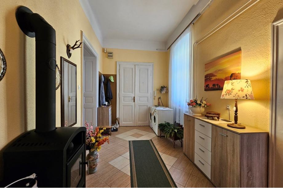 Stanovanje je popolnoma opremljeno in obnovljeno za sodobne potrebe: je Simbol staromeščanske celje hiše z visokim stanadrom bibivanja v centru celja: Vključuje svetle delovne površine, kuhinjo z jedilnico in pečjo na drva na hodniku, visokimi stropovi ,sodobna, dve parkirišči in lastna senca velikih krošenj. Plinska peč za ogrevanje in sanitarno vodo, pomivalni stroj, elektrika, internet-optični kabel ter kabelski priključi omogočajo visoko udobje. Stanovanje vključuje tudi klet/shrambo in podstrešje ter dva parkirna prostora za dodatno praktičnost.