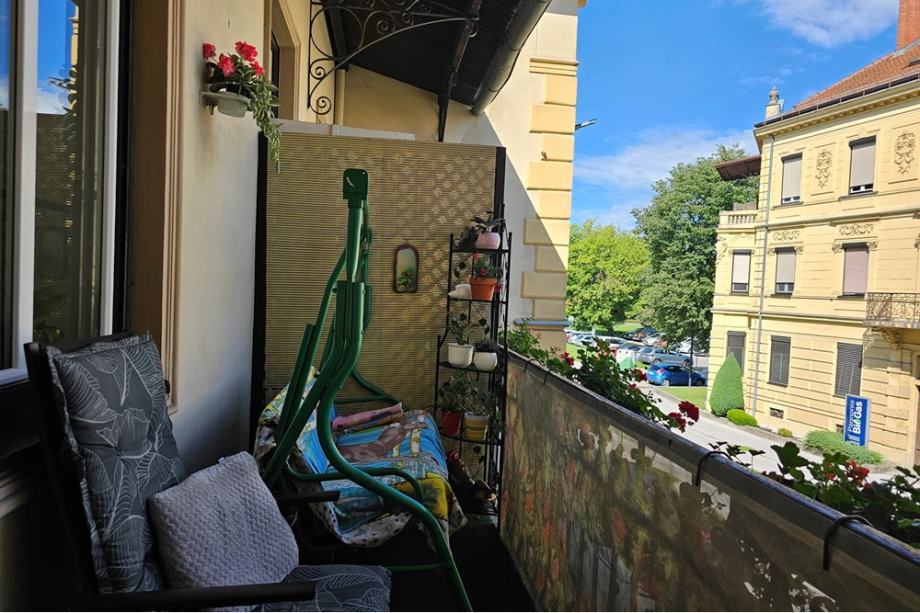 Prostoren balkon in terasa nudita neprecenljive trenutke sprostitve s čudovitim razgledom na mesto.