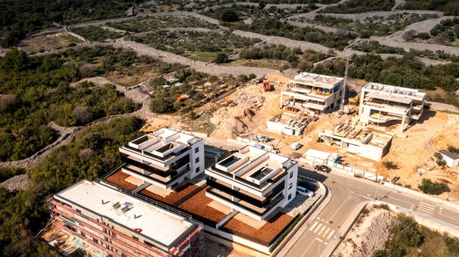 Ta čudovit dvonadstropni apartma s pogledom na morje in bazen se nahaja približno 600 metrov od morja. Ima cca 113 m2 zaprtega prostora in se nahaja v 1. in 2. nadstropju stavbe s skupno štirimi stanovanji. V prvem nadstropju je kopalnica, tri spalnice, od katerih ima ena lastno kopalnico, vse tri sobe pa imajo izhod na velik balkon velikosti 29 m2. V drugem nadstropju je WC in odprti prostor s kuhinjo, jedilnico in dnevno sobo, iz katerega velika steklena stena vodi na velik balkon cca 25 m2 s pogledom na morje. Zunanje stopnišče z balkona vodi na strešno teraso cca 55 m2, kjer se nahaja bazen cca 16 m2 s katerega lahko uživate v čudovitem pogledu na morje. Stanovanju pripadata dve parkirni mesti. Skupna neto kvadratura stanovanja je 164 m2. Ogrevanje in hlajenje je rešeno s toplotno črpalko (talno ogrevanje) in klimatskimi napravami. Objekt je grajen z vrhunskimi materiali, alu pohištvom, večslojnim parketom in prvovrstnimi sanitarijami, prvovrstnimi lesenimi notranjimi vrati. Predviden zaključek gradnje je konec leta 2023. Krk danes poznamo kot turistično destinacijo izjemne kulturne in umetniške dediščine, kjer starodavna Splendidissima Civitas Curitarum (prelepo mesto Krčanov) živi v sožitju z živahnim značajem sodobnega časa. Idealna geografska lega je prednost, ki jo je otok Krk turistično zelo cenil. Govorimo o bližini kopnega, kateremu so pred dvajsetimi leti zgradili most, ki povezuje Krk s celino in ga tako naredi še bolj dostopnega. Zaradi dobre prometne povezanosti je otok Krk priljubljena izletniška destinacija, pa tudi obratno: otok je primeren za vsebinske enodnevne izlete. Na primer izlet v narodna parka Plitvička jezera in Severni Velebit. Pravi raziskovalci bodo zagotovo želeli spoznati Reko - središče Primorsko goranske županije, svoje bivanje na Reki pa bodo povezali z neizogibnim obiskom Opatije - turističnega "bisera Jadrana". Zelo zanimiv bo enodnevni izlet v Istro, kjer raje kot na obali priporočamo bivanje v njenem osrednjem delu! Končno je otok Krk povezan s trajektno linijo s tremi otoki: Rab, Cres, Lošinj, ki lahko postanejo tudi destinacije za vaše dnevne izlete.