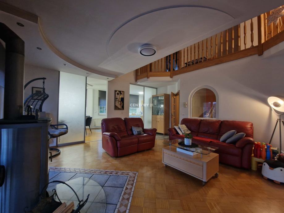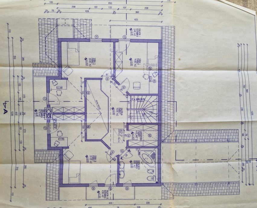 Mansarda: tri velike spalnice, balkon, kopalnica, garderoba in galerija.