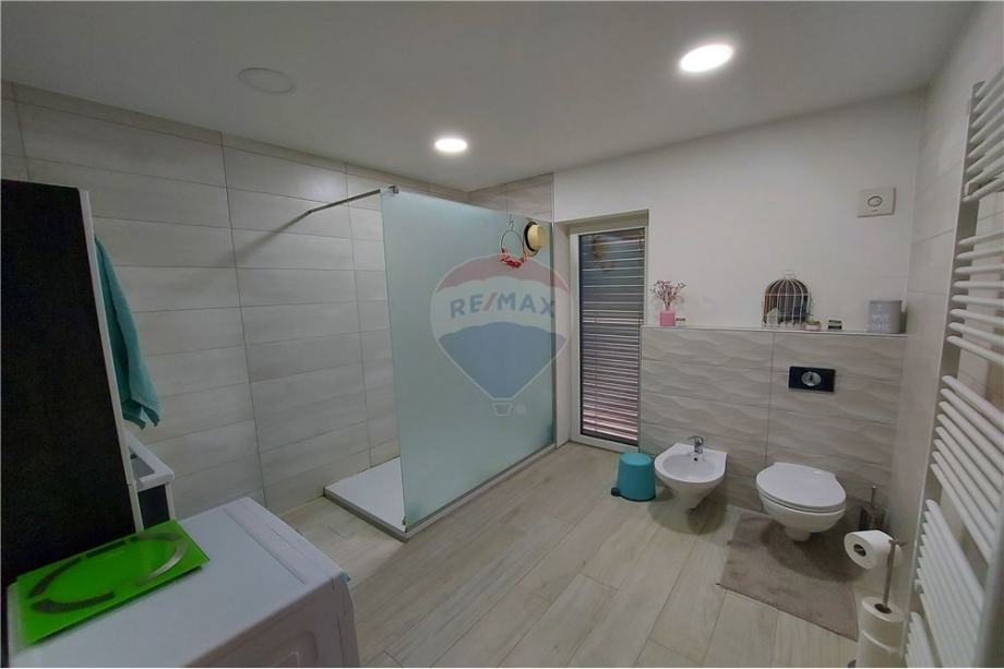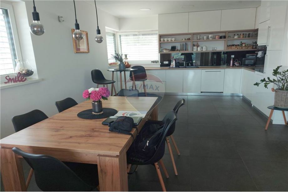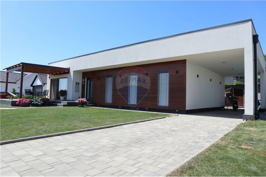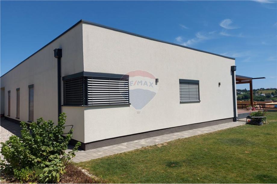 Hiša je grajena energetsko varčno, gretje je talno z toplotno črpalko zrak – voda vrhunske znamke DAIKIN. Strošek ogrevanja in hlajenja je zanemarljiv. Okna-troslojni termopan z komarniki. Streha ravne izvedbe pokrita z siko, skriti žlebovi.