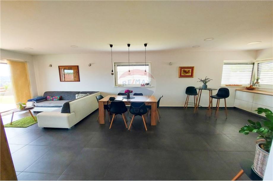 Skupna površina nepremičnine znaša cca 200m2 btto, sama hiša zunanje dimenzije 10m x 15m, terasa 5m x 4m ter nadstrešek za dva avtomobila 3m x 10m. Bivalna površina znaša 113,2 m2 neto.