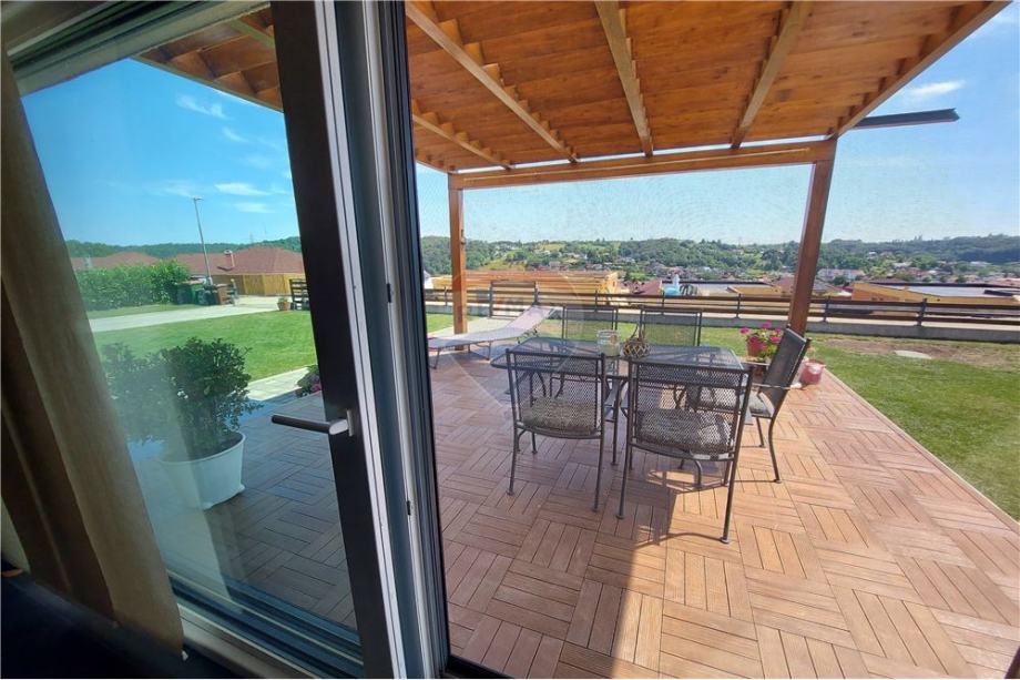 Prodamo moderno atrijsko stanovanjsko hišo, zasnovano po sodobnih arhitekturnih trendih. Hiša se nahaja na elitni lokaciji in sicer v Šentilju, na samem vrhu hriba, ter nudi čudovit razgled. Umeščena je na ravni parceli pravokotne oblike velikosti 670 m2, v sklopu urejenega naselja individualnih hiš (parcela je v sklopu navedenega naselja med največjimi) . Dnevni prostor z izhodom na veliko teraso gleda v smeri vzhoda ter je večino dneva obsijan z soncem.