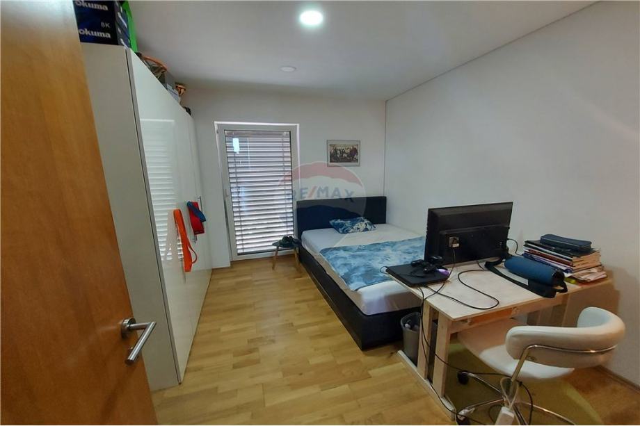 Površina prostorov – kuhinja, jedilnica in dnevna soba = 37,94m2: hodnik= 14,52m2: otroška soba1= 11,37 m2; otroška soba2= 11,37 m2; spalnica=14,70 m2; kabinet v spalnici= 6,20 m2; kopalnica=9,45 m2; utility=7,60 m2.