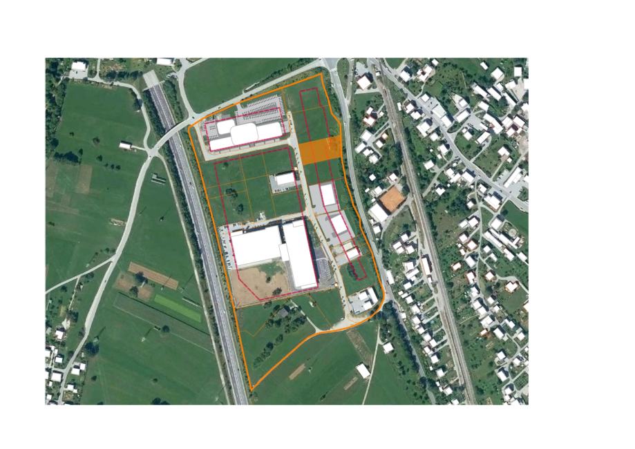 V poslovni coni v Žirovnici prodamo komunalno opremljeno zemljišče v velikosti 2.421 m2. Zemljišče je mogoče združiti s sosednjim zemljiščem in ju povezati v večje zemljišče. Na predmetnem zemljišču je možno graditi objekt znotraj gradbenih mej in gradbene linije, glede na vaše potrebe. Maximalna površina objekta znaša 25 m x 23,0 m, etažnosti K+P+2. Dimenzija objekta je lahko tudi manjša, pozicija objekta pa mora biti na gradbeni liniji (GL). Cena za m2 zemljišča znaša 200,00 € + DDV.