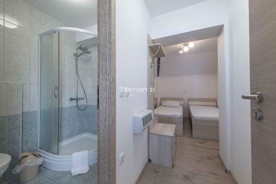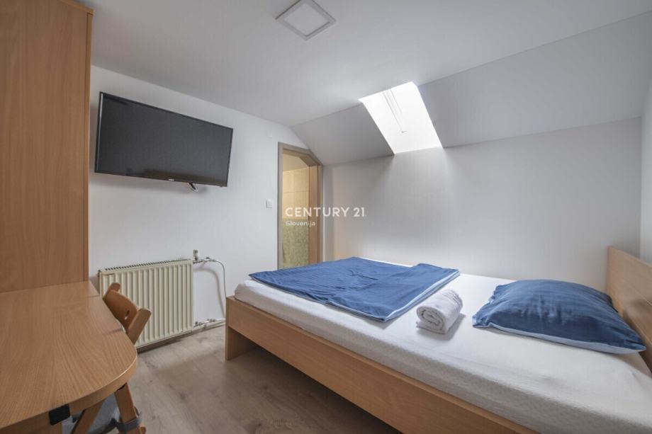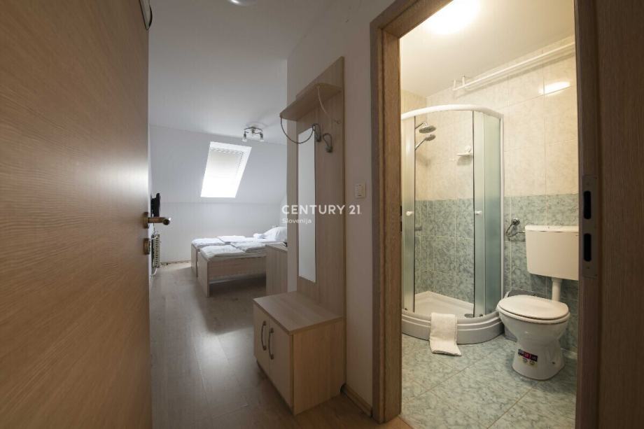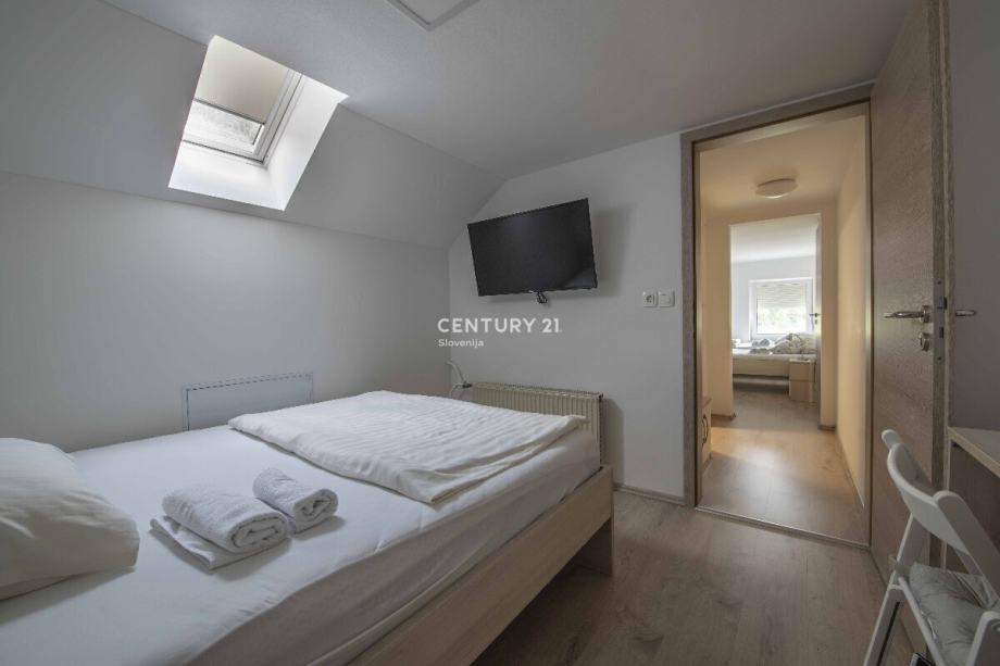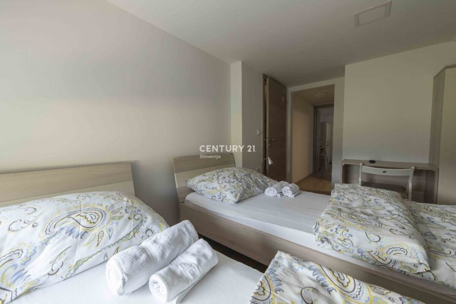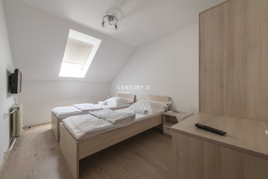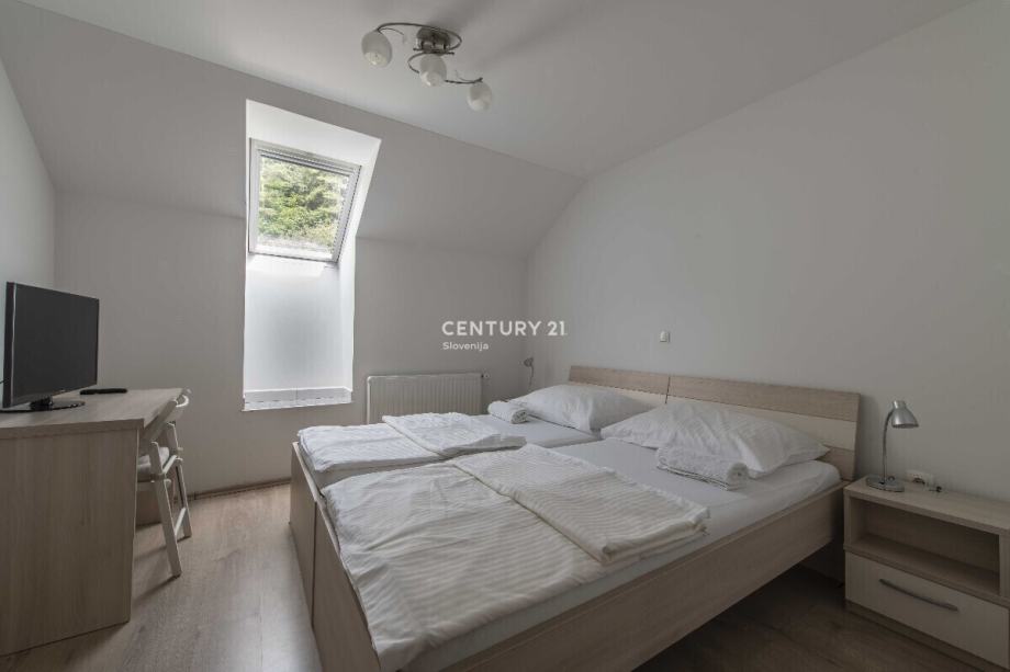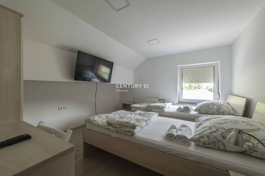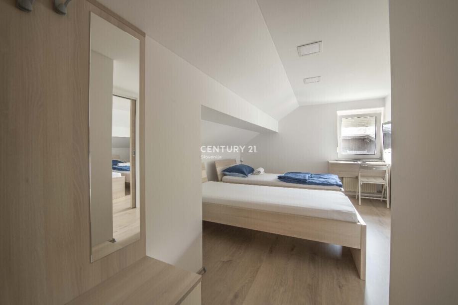 V prvem in drugem nastropju stavbe so preko lastnega vhoda urejene dvo, tro ter štiri posteljne sobe z novimi lastnimi kopalnicami, televizijo ter brezžičnim internetom.
