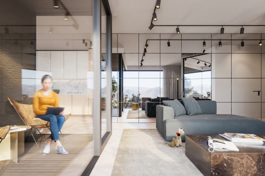 4. NADSTANDARDNA GRADNJA: klasični tip gradnje (opeka + AB) in večji stekleni elementi ter premium vgrajeni materiali (odlična mikroklima bivanja). Nadstandardna višina stropov v stanovanju = 2,6 m.
