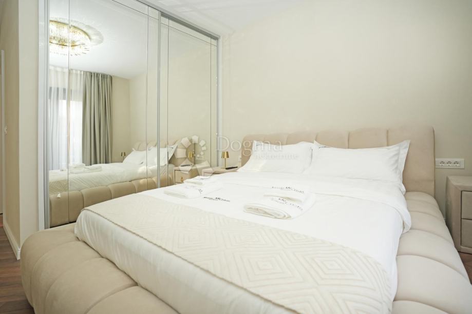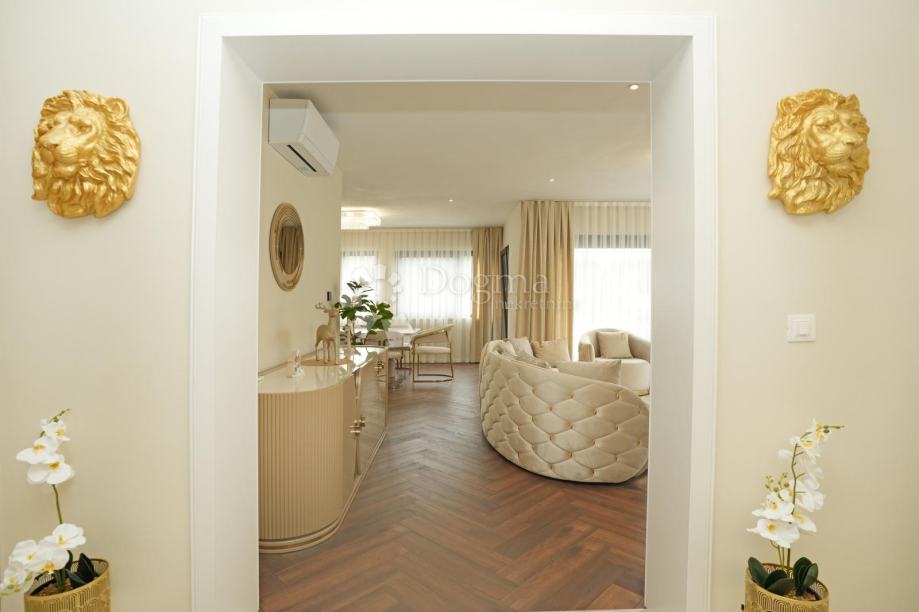 Na prodaj je luksuzno stanovanje z vrtom in bazenom v moderni novogradnji, ki se nahaja le 500 metrov od morja v Rovinju.