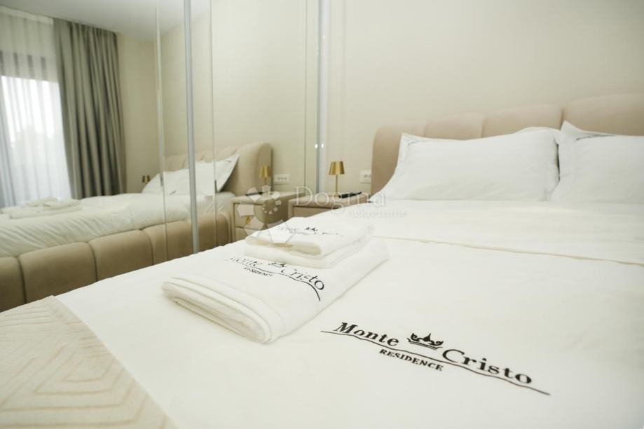 Sestavljen je iz 3 prostornih spalnic, 2 elegantno urejenih kopalnic in odprte dnevne sobe s kuhinjo in jedilnico.