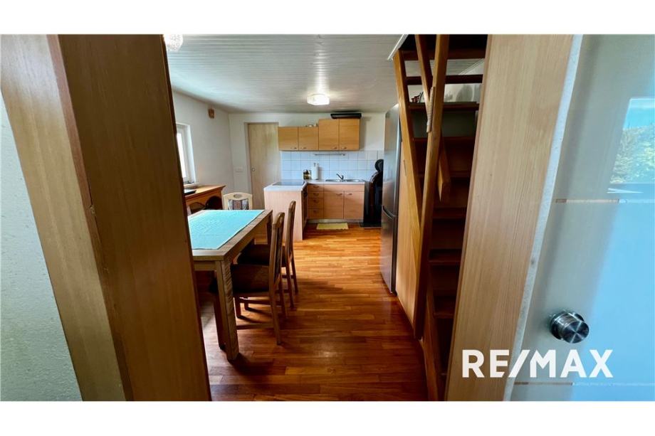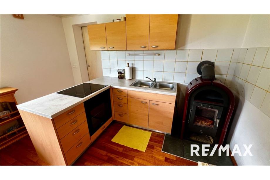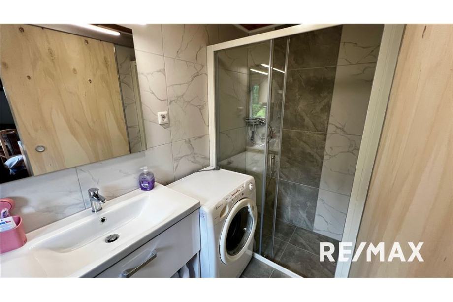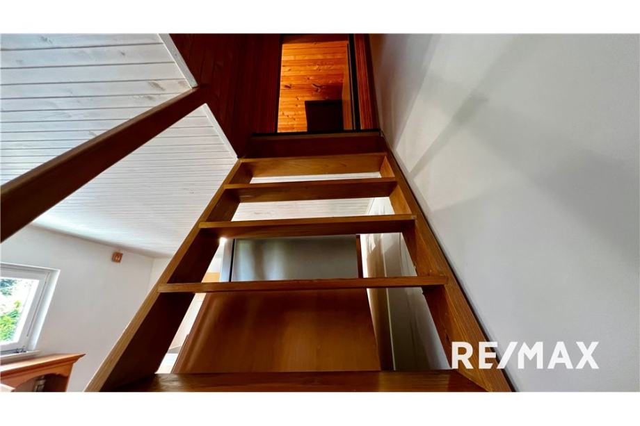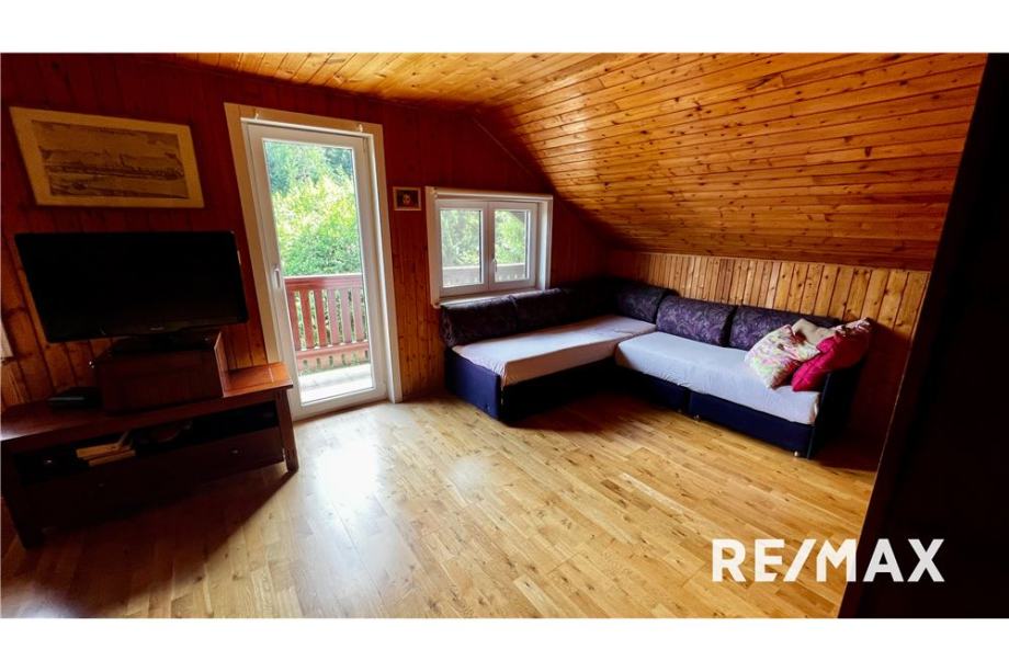 - ogrevanje: na kamin na drva v pritličju in termostatski radiator v mansardi.