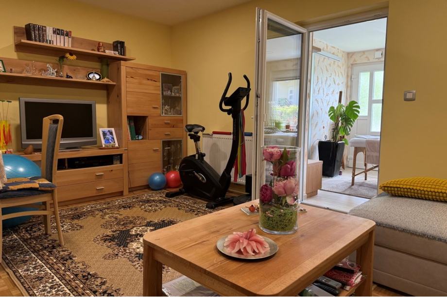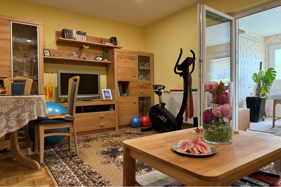 V bivalnem delu se nahaja hodnik 9,16 m2, kopalnica 3 m2, spalnica 14,28 m2, kuhinja z jedilnico 28,5 m2 ter dodatna soba 11,27 m2 s shrambo 4,15 m2.