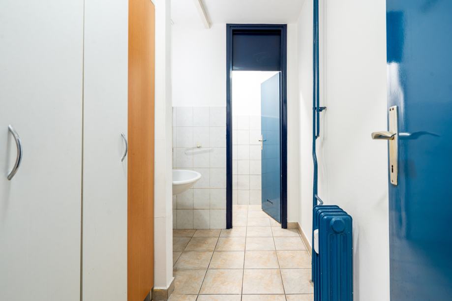 talna keramika v osrednjem prostoru, sanitarijah in kuhinji,