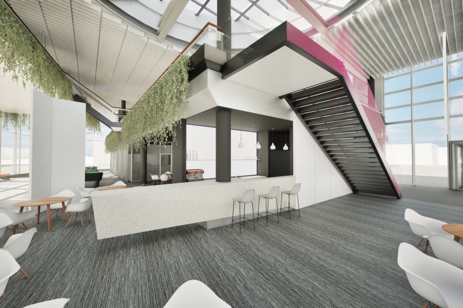 Opremljenost: Objekt bo opremljen z recepcijo, predpripravo za bar in lounge, katerega vsebino in obliko je (načeloma) možno sooblikovati v primeru dogovora o najemu. Pisarne v pritličju so obrtniško zaključene. Salon je brez posebnosti, možnost ureditve namenske razsvetljave, prilagoditve talne obloge, drugo po dogovoru.