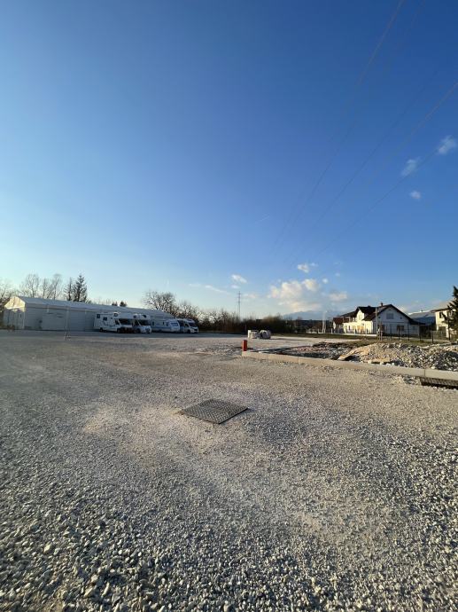 Na ograjeni parceli 5000 m2 oddamo v varovanem pasu parcelo 800-1000m2 z urejeno podlago, možnost najema parcele plus možnost postavitve šotora 300m2 katerima ima vse prikljucke dolgoročnega najema.Prostor kjer bi se postavil sklad.šotor ima ,priključke kanalizacije , vode , elektrike ,varovan z kamerami, el. rampo.Alarmom